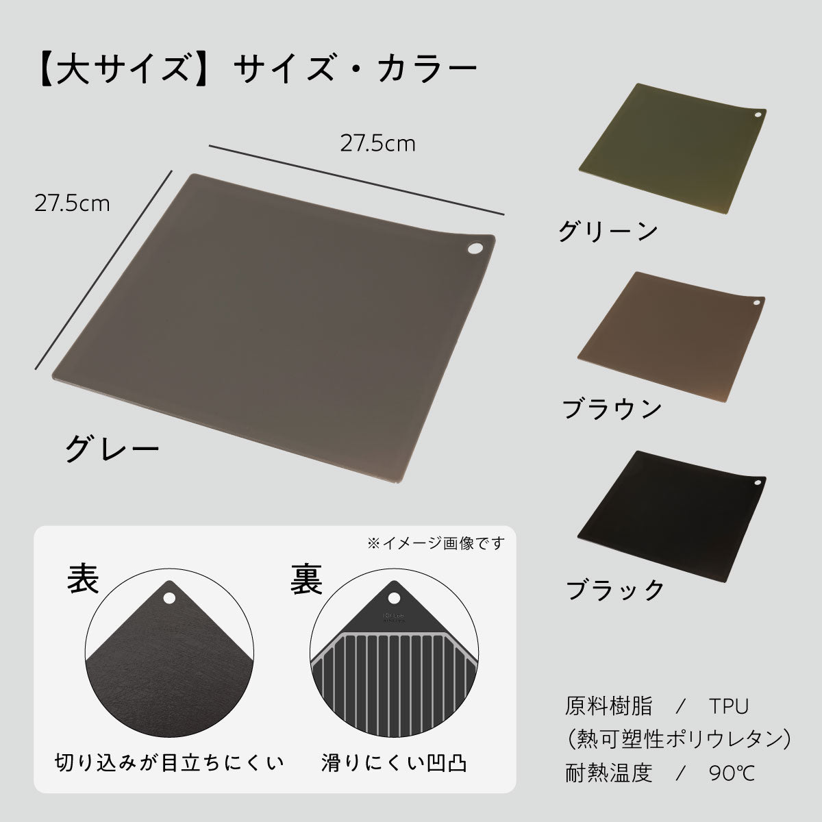 ●本製品は、一般的なまな板に比べてキズがつきにくい素材ですが、包丁やナイフで強く切りつけた場合、キズがつきます。キズがつかないことを保証するものではありません●初めて使用する場合は、食器用洗剤で洗浄してください。●火のそばに置かないでください。●加熱した鍋などを置かないでください。●電子レンジ・オーブン等では使用しないでください。●クレンザーや研磨剤のついたスポンジの使用は製品を傷つけますのでお控えください。●光に当て続けると黄変する場合がありますが、性能に影響はありません。●色の濃い食材を繰り返し使用すると、変色する場合がありますが、食材の色が染まったもので、そのまま使用できます。